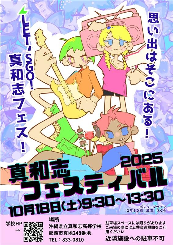 【2025 真和志フェスティバル】が10月18日(土)に開催されます。ご来場の際は、駐車スペースに限りがあるためできる限り公共交通機関をご利用下さい。近隣施設への駐車は不可となっております。